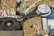 В данном экземпляре видеомагнитофона установлена дополнительная плата из жёлтого текстолита, не являющаяся частью оригинальной конструкции
